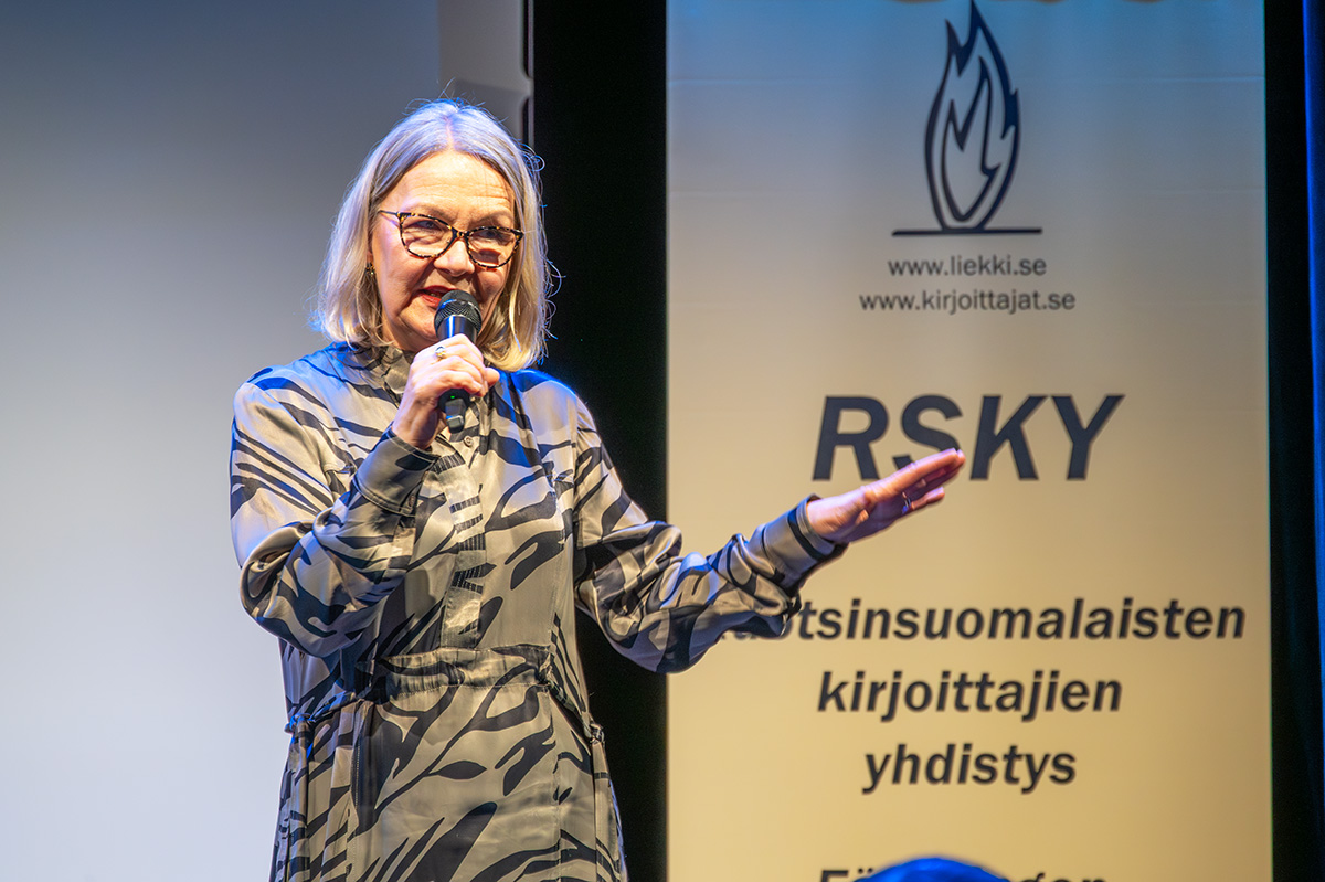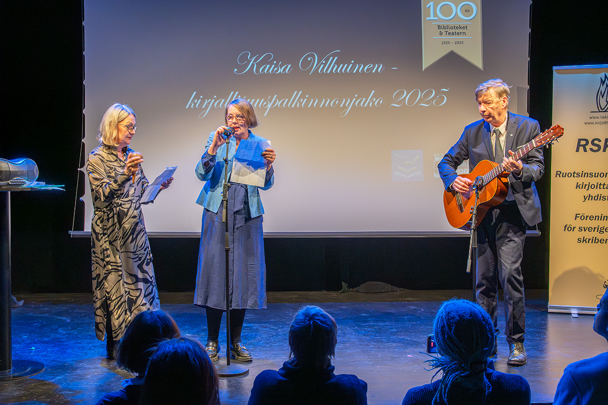 RSKY:n puheenjohtaja ja palkintoraadin jäsen Ani Henttonen kertoi Kaisa Vilhuinen -kirjallisuuspalkinnosta ja esitteli kilpailun vuoden 2025 voittajan sekä jakoi palkinnot. |