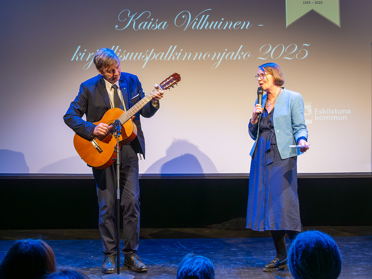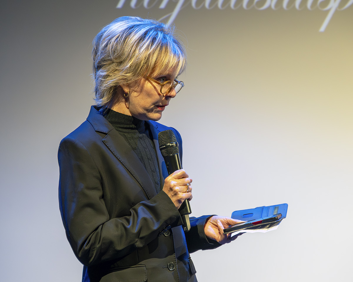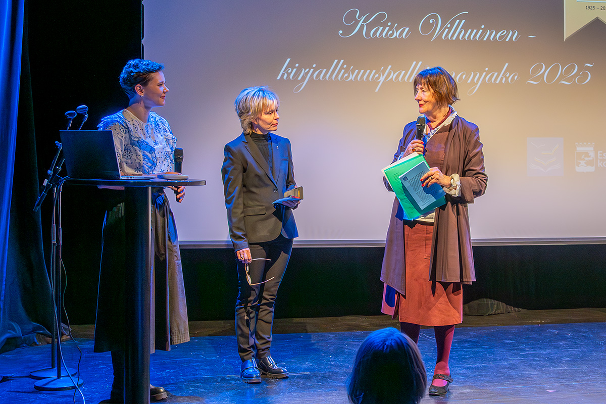 RSKY:n puheenjohtaja ja palkintoraadin jäsen Ani Henttonen kertoi Kaisa Vilhuinen -kirjallisuuspalkinnosta ja esitteli kilpailun vuoden 2025 voittajan sekä jakoi palkinnot. |